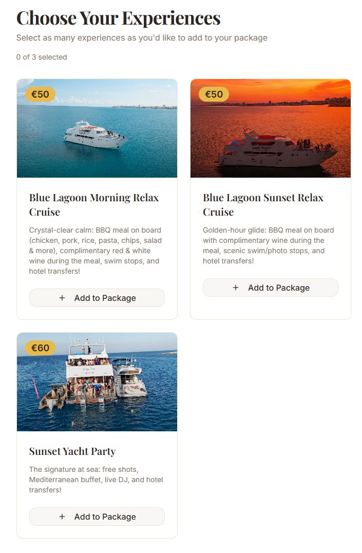 Ahogy a horizont melegszik, szálljon fedélzetre, és hagyja, hogy kibontakozzon az este. Ingyenes shotok, friss büfé és DJ zene repít az arany órából az éjszakába. Tágas fedélzetek, pezsgő közönség és a ragyogó partvidék – ez az Ayia Napa története, amit mindenki elmesél.