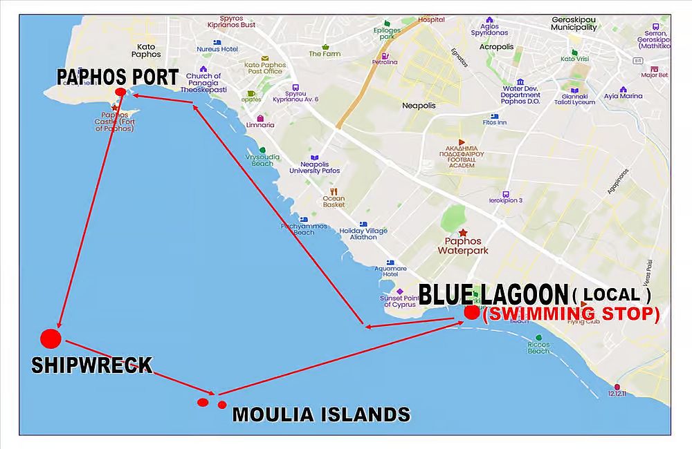 Nézze meg a Moulia-szigeteket, ússzon a Geroskipou-öböl helyi lagúnájában, és gyönyörködjön a partvonalban a visszaúton.