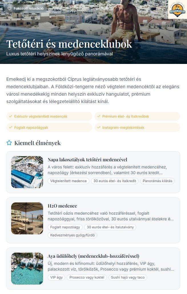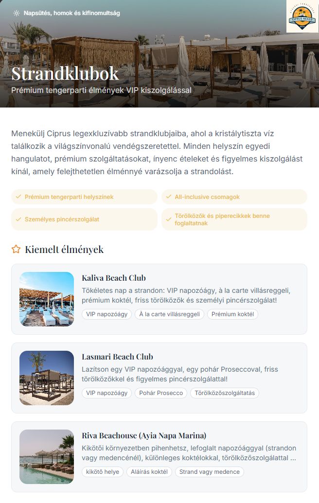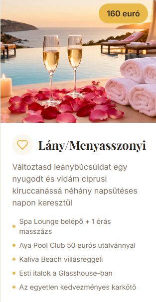 Exkluzív prémium csomagok csak Ciprus keleti partján érhetők el!