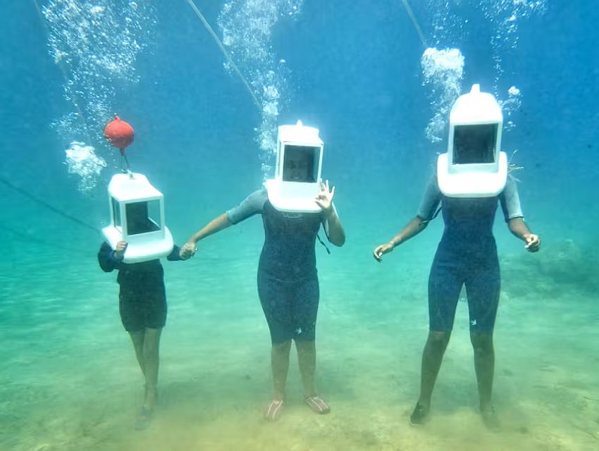 - Víz alatti séta 🐾 – egy futurisztikus sisakban sétálsz a tengerfenéken, miközben friss levegőt kapsz.